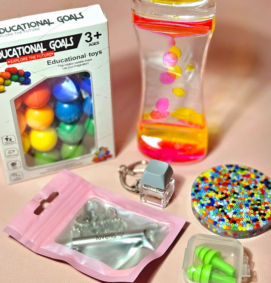 • Fidget Comforts: Ball fidget toy, keyboard click fidget toy, and Axolotl Squishy offer quiet, soothing tactile engagement to ease restlessness.